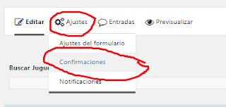 Ya con el formulario e Gravity forms creado, lo que debes de hacer es ir a ajustes en el menu de arriba y seleccionar Confirmaciones